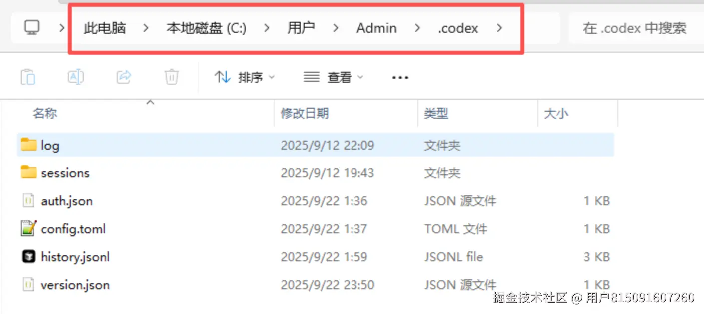提醒:需要在资源管理器里打开“显示隐藏的项目”,因为 .codex 是隐藏目录风格。