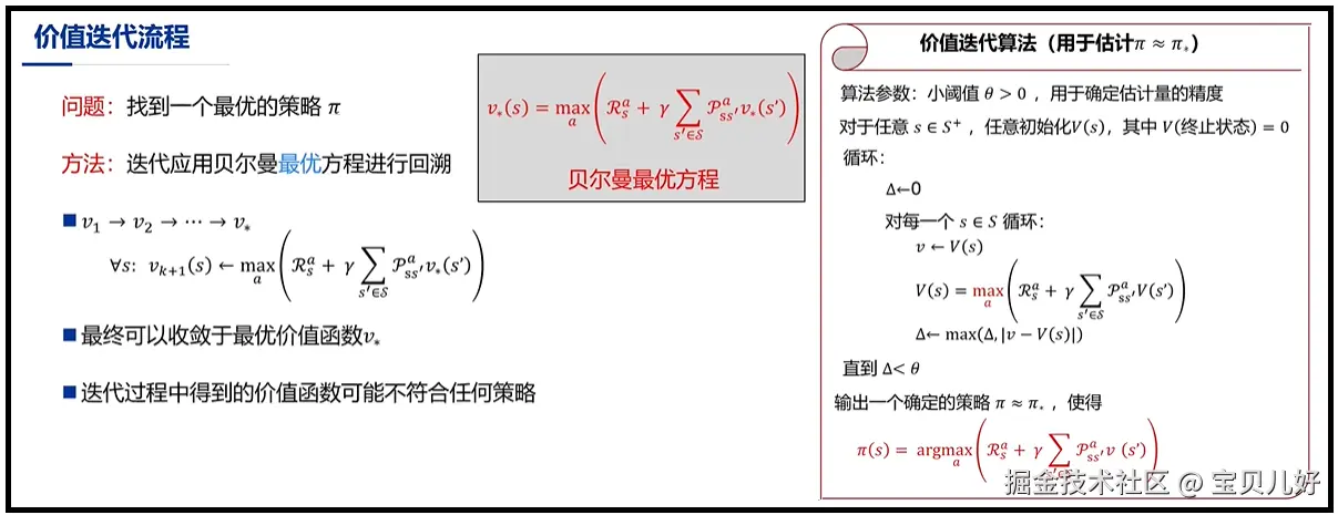 第二种方法叫价值迭代(Value Iteration)。其底层其实就是基于贝尔曼最优方程。