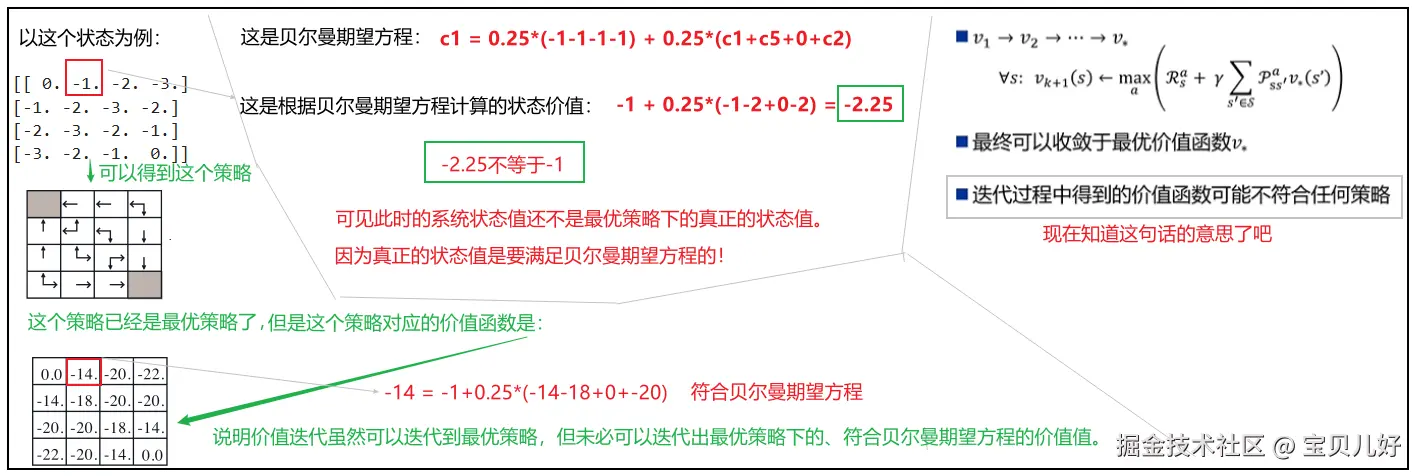 求解线性方程组得到的就是所有状态的价值值,也叫状态值,就是上图中的红色的数字。