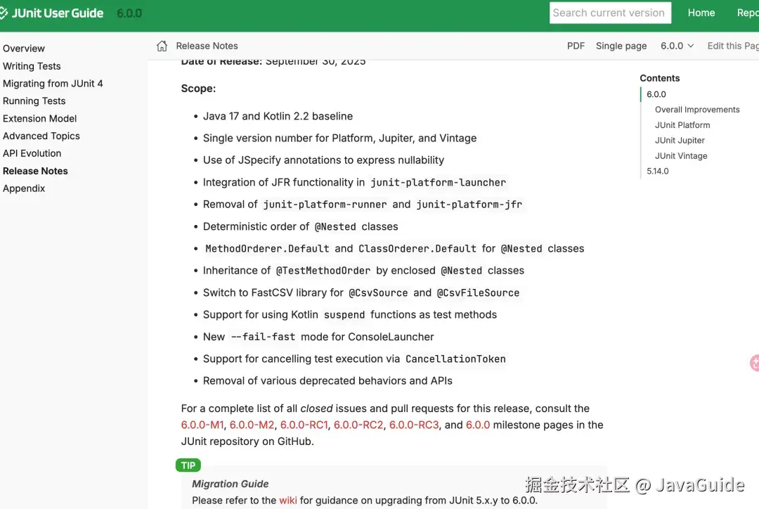 - 版本号统一:JUnit Platform、Jupiter 和 Vintage 现在统一使用 6.0.0 版本号。