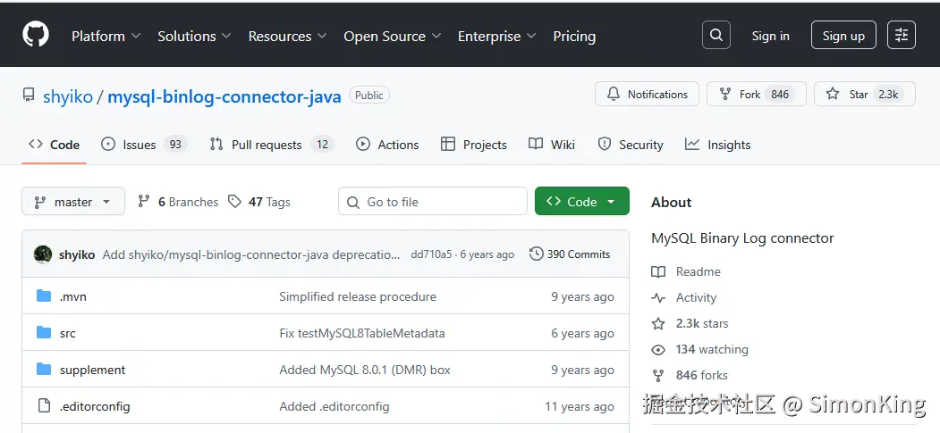 mysql-binlog-connector-java是Github上开源的一款产品,有2.3K的star,846的Fork。很多开源框架都是根据其演变而来。