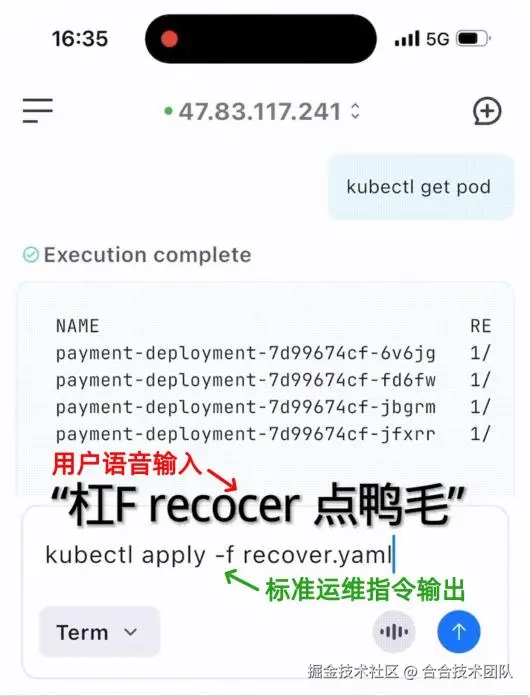 图说:Chaterm移动端将用户模糊发音精准转化为标准运维指令