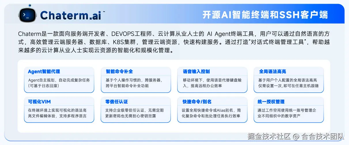 随着大模型技术不断向垂直业务场景渗透,AI Agent成为提升企业效率的关键。在此趋势下,Chaterm也在积极探索运维智能化落地,相关实践已获行业认可。此前,在全球增长咨询公司沙利文与头豹研究院联合发布的《2025年中国生成式AI行业最佳应用实践》中,Chaterm凭借其在跨平台云资源智能管理方面的创新应用,入选2025年中国生成式AI最佳实践案例。未来,Chaterm将持续拓展AI技术在复杂运维场景中的应用,助力企业构建更高效、稳健的自动化体系。