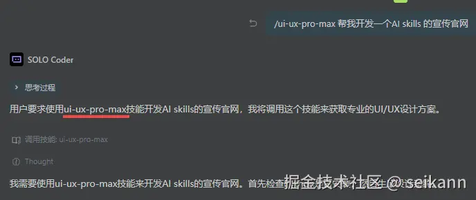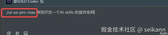 可以明确告诉AI你要用哪个skills,以/ + skills的名字的方式,如下图