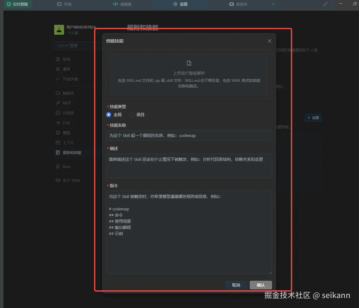 直接把你的要求告诉AI,让AI帮你创建,如下图以Trae为例