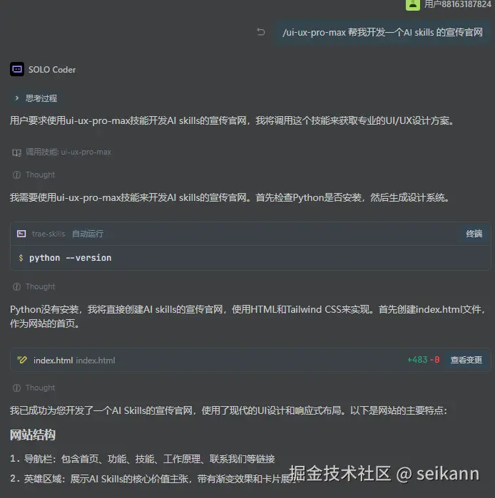 在AI技术不断发展的今天,AI Skills 不仅是一种工具,更是开发者的合作伙伴。通过与AI Skills的协作,我们可以不限于前端or后端,我们就是全栈,再配合更多的AI 能力,甚至一个人就能完成一个项目。