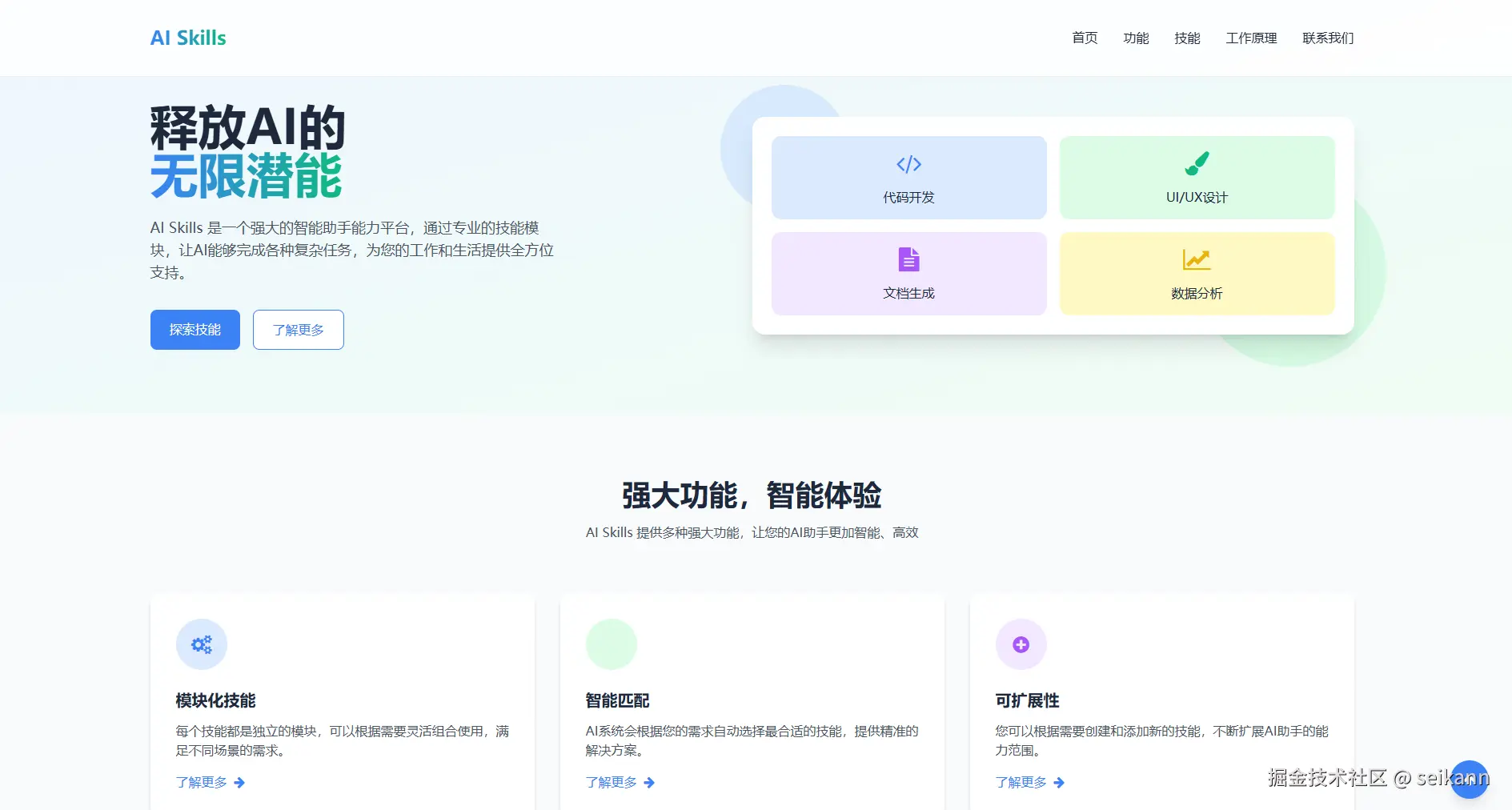 如果我们不用skills, 直接让AI开发一个上图的页面,我们需要很多的提示词描述,比如布局、比如配色等等,甚至还得多次描述多次修正才能达到一个比较好看的效果。
