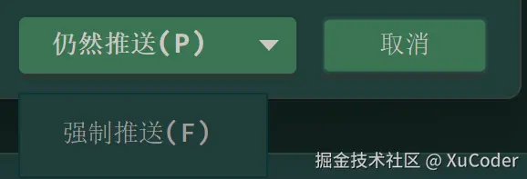 当我点击 Push 时,远程仓库发现现在推送的 Commit A’ 和已有的 Commit A 对不上,为了防止覆盖代码,Git 默认拦截了这次推送。