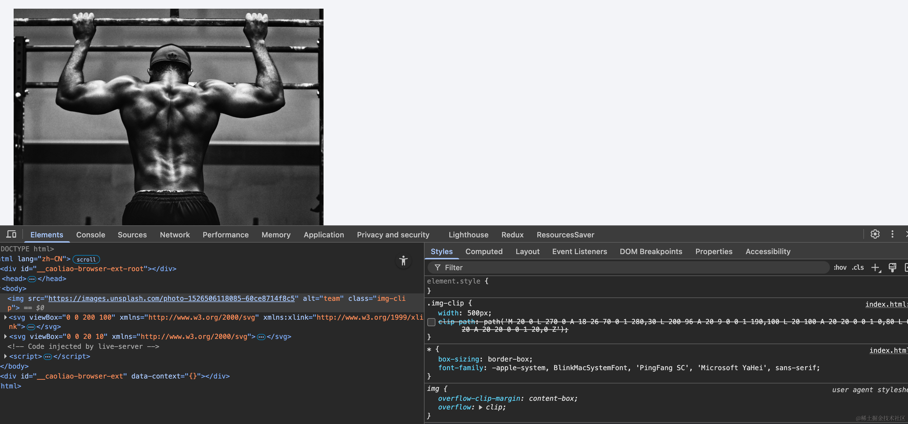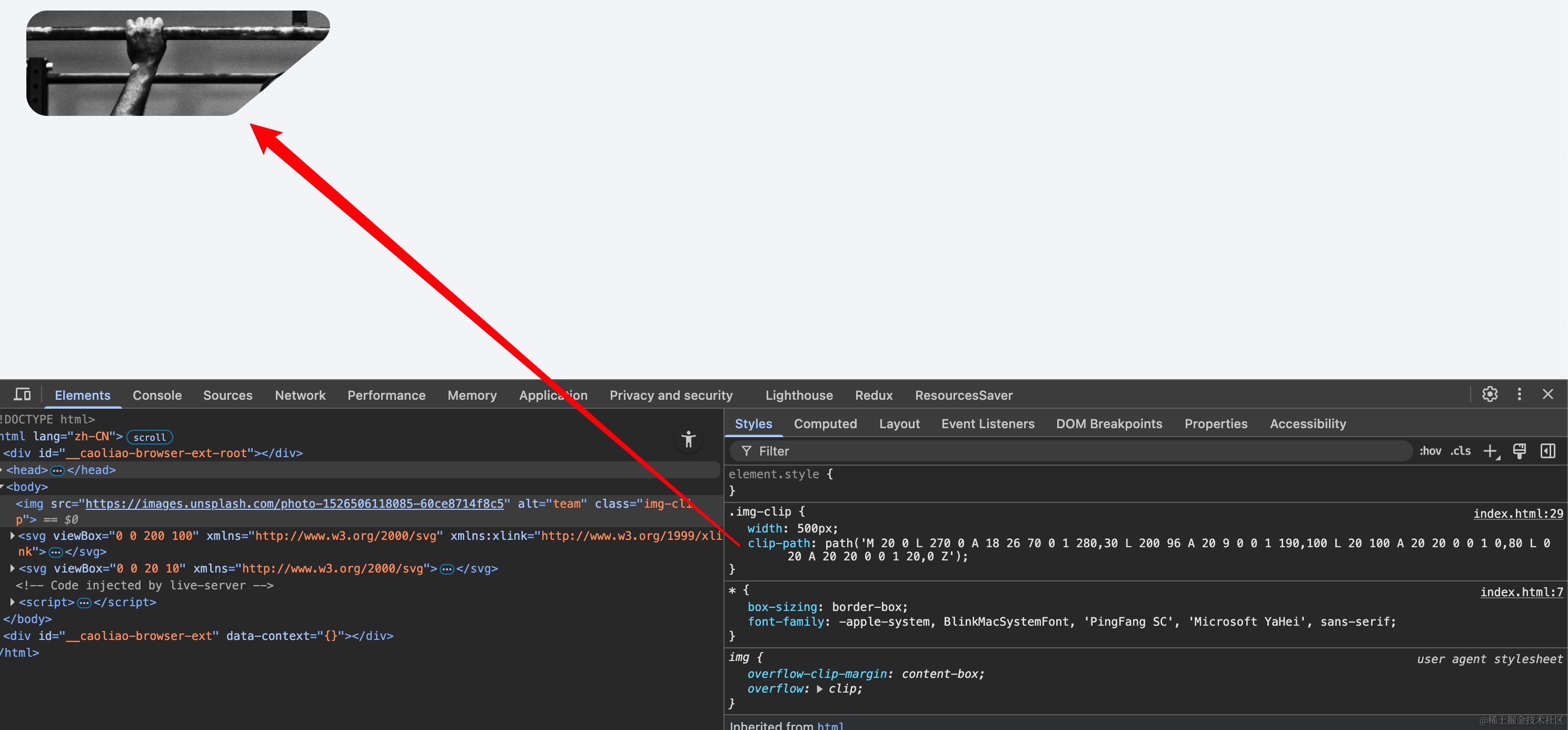 用到的就是css的属性clip-path,官方文档:developer.mozilla.org/zh-CN/docs/…