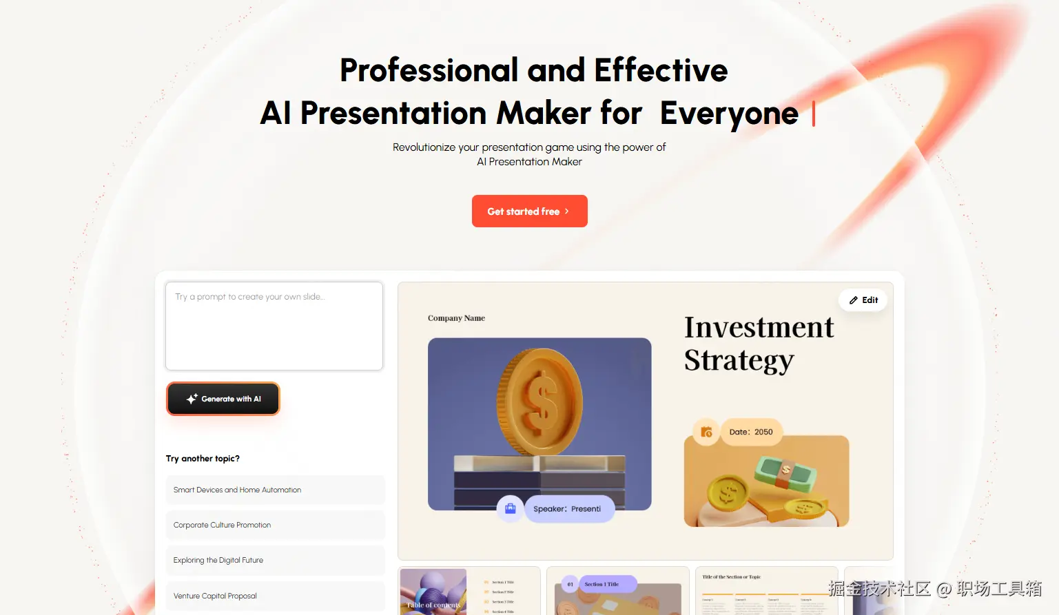 核心定位: 专注于AI驱动的智能演示文稿创作平台