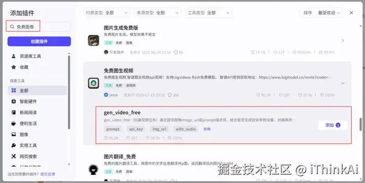免费生成AI视频的Coze智能体工作流已经同步在iThinkAi扣子团队空间了,你们可以复制到 个人空间,永久使用。