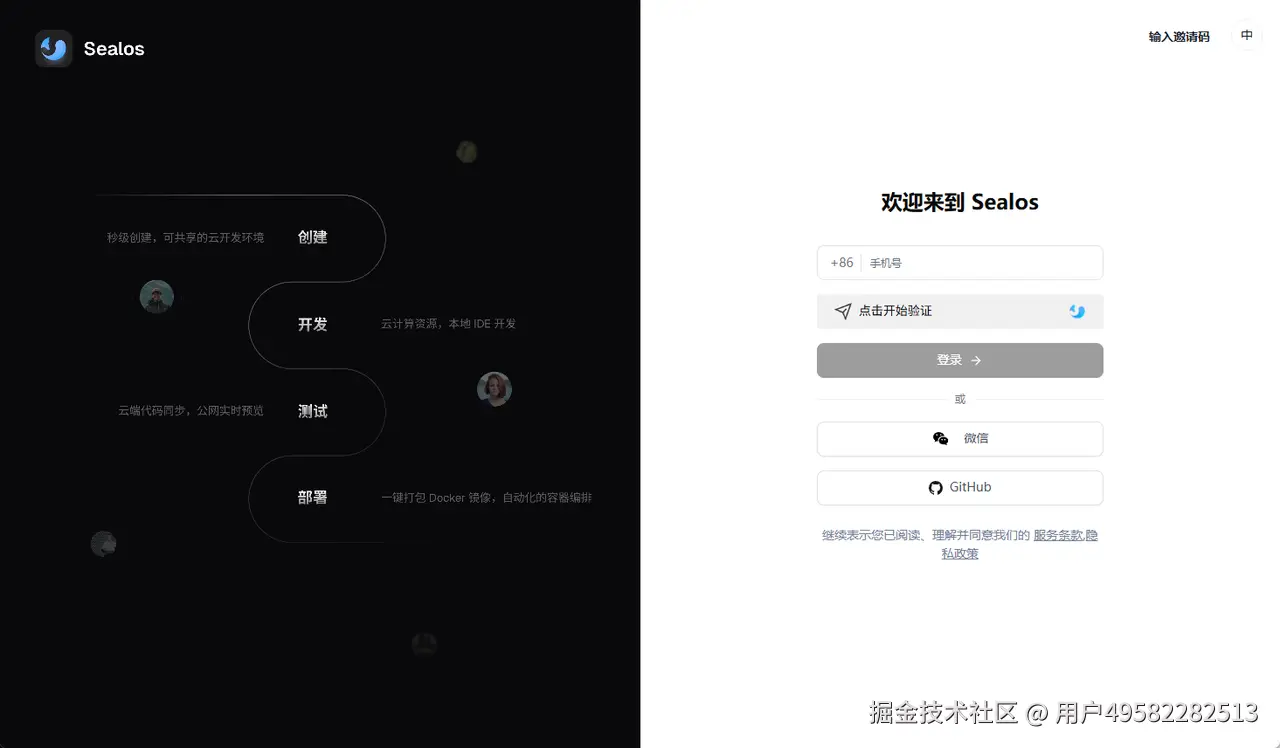 访问 Sealos Cloud,用手机号或者微信登录就行。