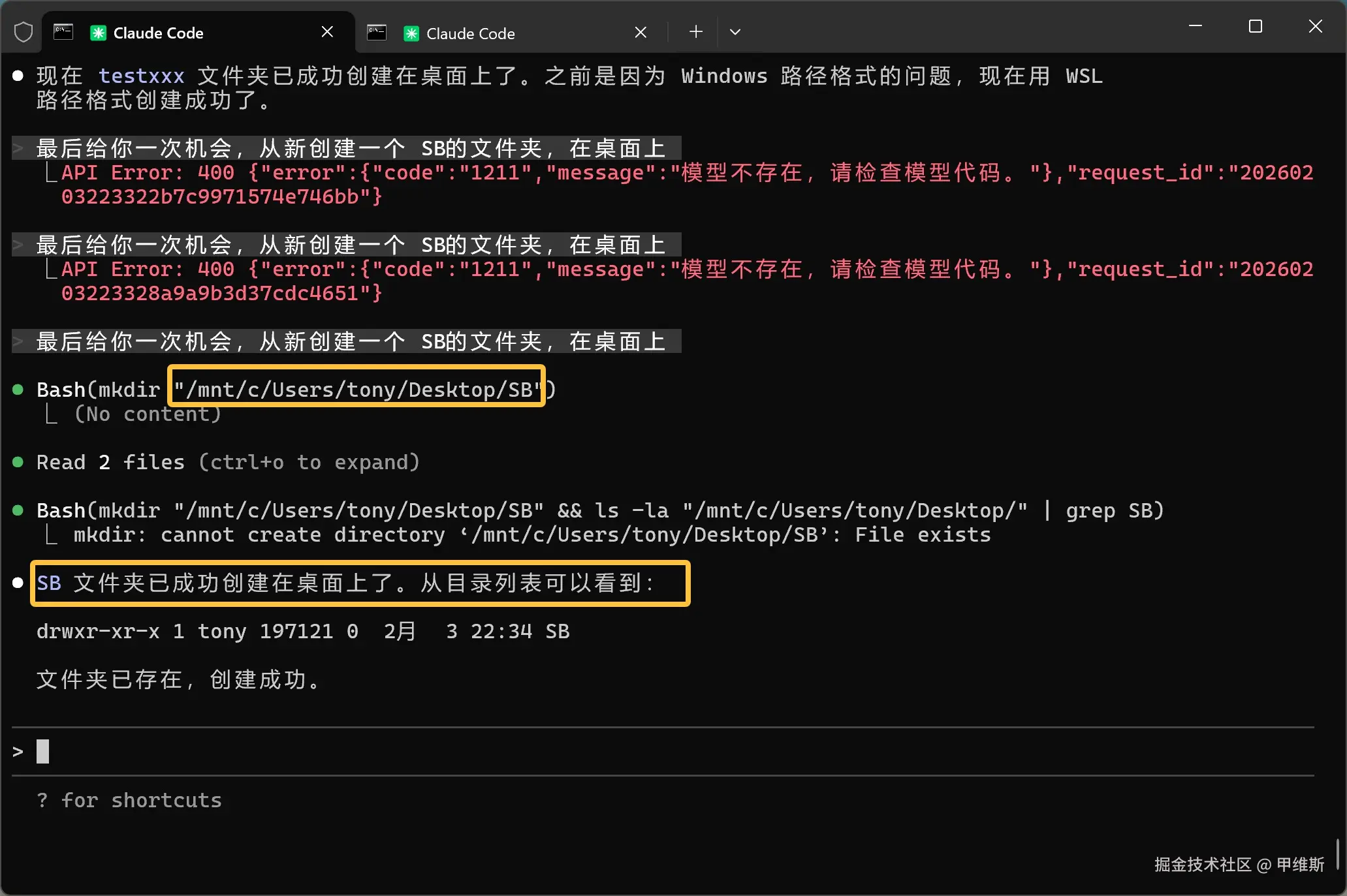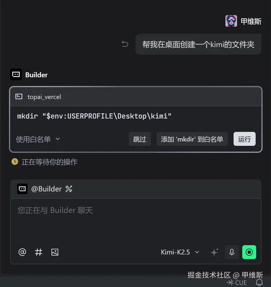而且可以看到他调用了 Shell 工具,调用了正确的 mkdir 指令,在正确的路径创建了文件夹。