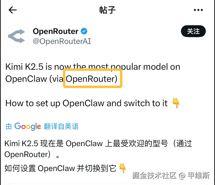 他也说了 Kimi k2.5 是 OpenClaw 上最流行的模型。