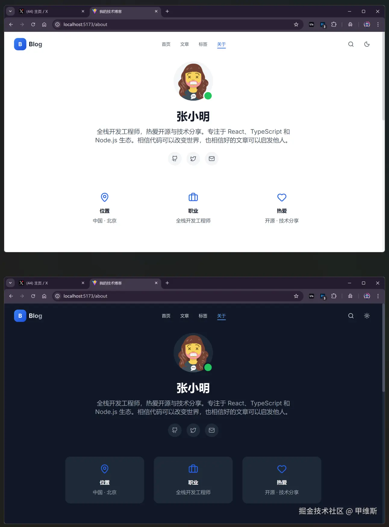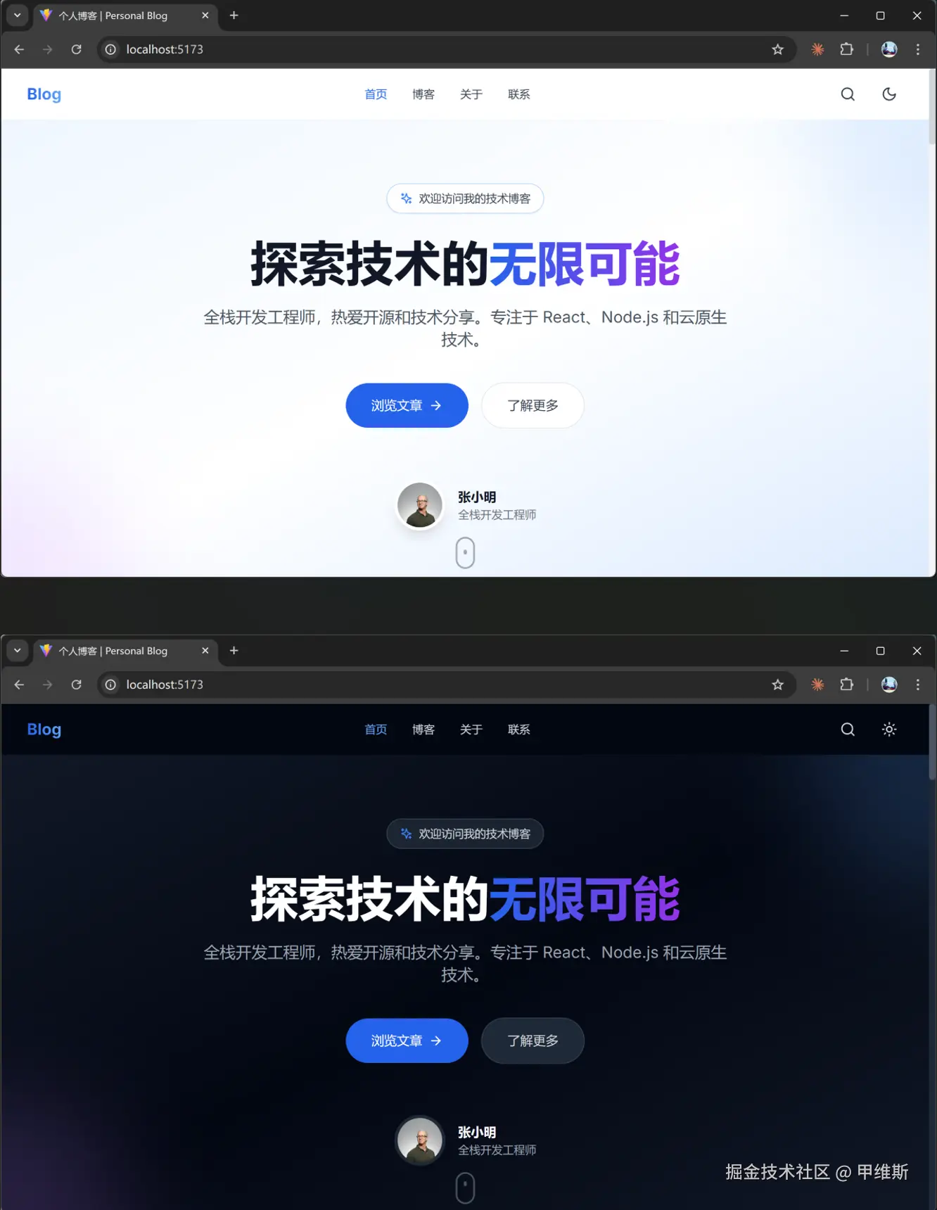 用 React 开发个人博客,要求功能完善,设计美观,专业级 UI 和 UX。