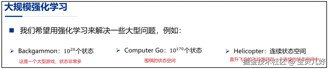 注意:上面都只是状态价值评估。不是一个完整的强化学习流程。完整的强化学习流程是要搜索到最优策略的。这里只讲如何逼近策略Π下的状态价值值。