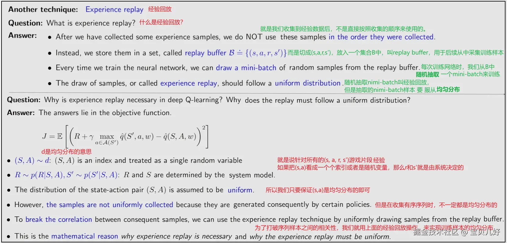 当我们训练模型时,也就是优化J(w)时,我们是在replay buffer中抽取一个个mini-batch的方式来训练模型的。这和深度学习的训练方式是一样的。