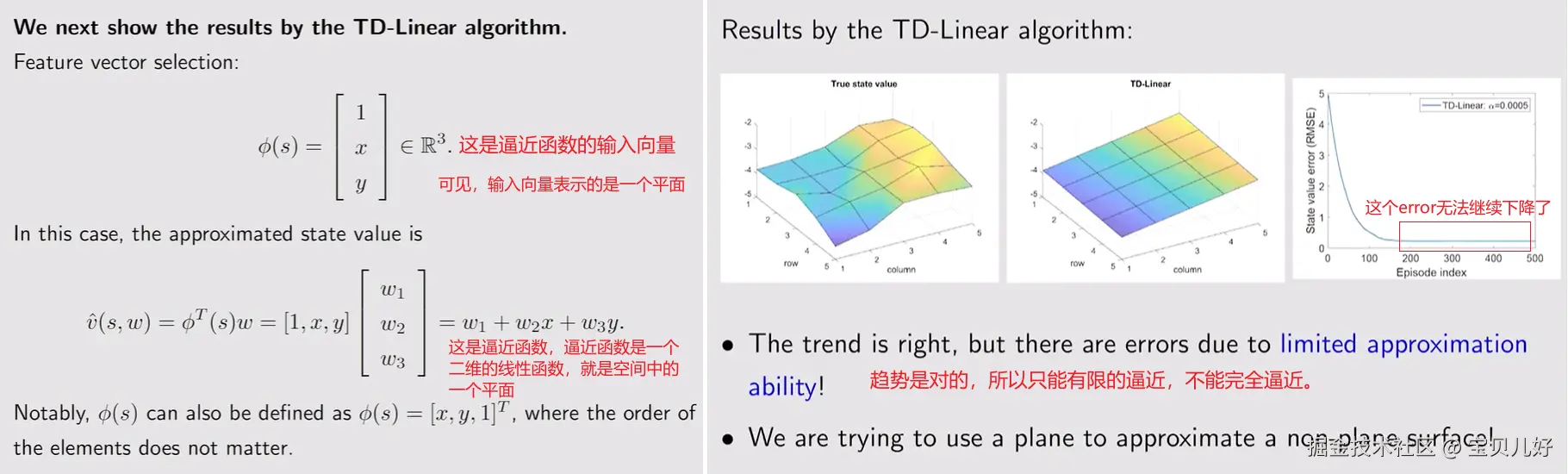 (1)下图是用一个平面函数来逼近真实的状态价值值: