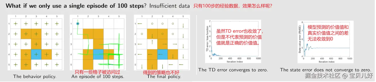 右图是,随着使用的episode越来越多,估计的误差也逐渐减小到0。说明传统的TD算法还是效果非常好的。