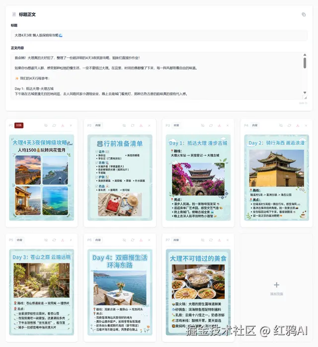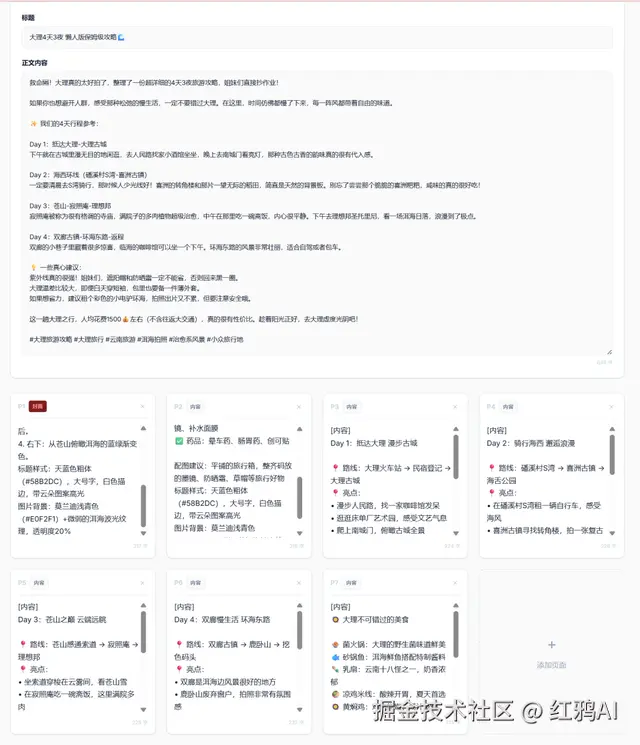系统会自动规划好一整套笔记的节奏,包括图片上的文案布局和背景建议,确保内容具有“人感”,而非冷冰冰的机器堆砌。