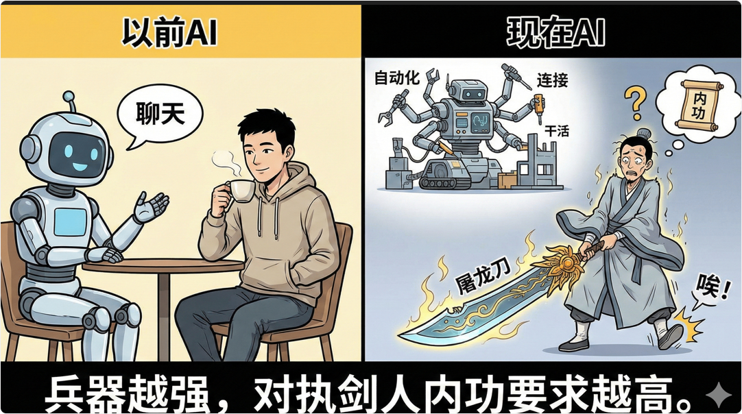 这篇文章不教你怎么配置服务器,也不教你写复杂的Python代码。 我想聊聊,在技术狂奔的这两年,从手搓Prompt到指挥Agent干活,要把事儿做漂亮,到底什么东西是从来没变过的。