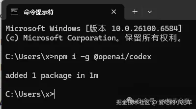 这条命令会从npm仓库下载Codex包并全局安装,这样你在任何目录下都能直接使用codex命令。安装可能需要一两分钟,取决于你的网络。