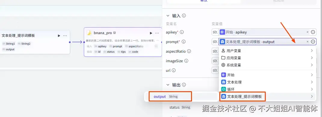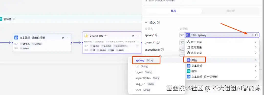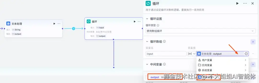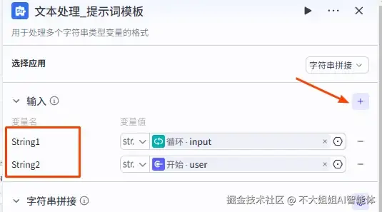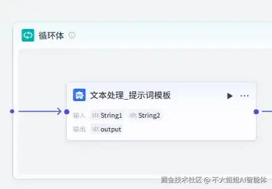 在【循环体】内添加,重命名为提示词模板,用于填写提示词模板。