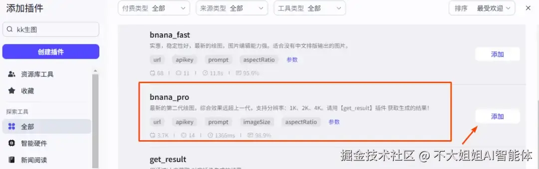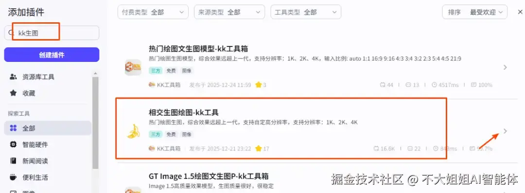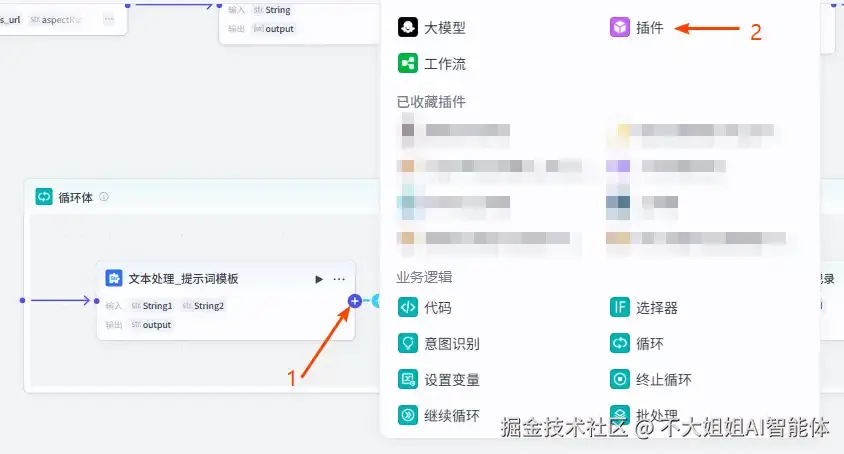 在【文本处理】组件(循环体内)后添加,搜索:kk生图,进行插件设置。