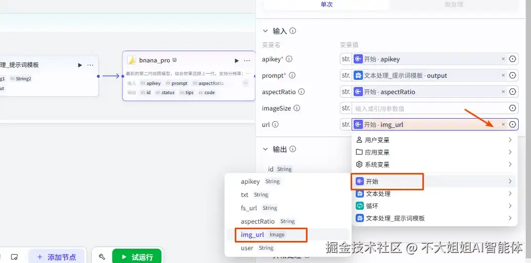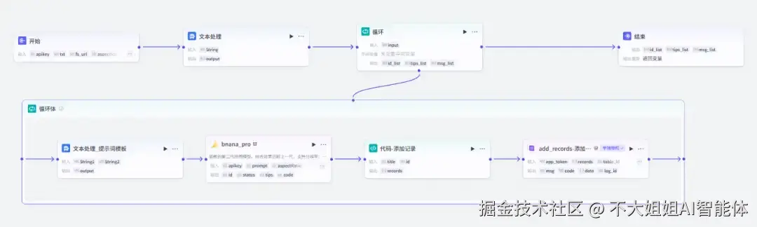 1.创建飞书多维表格用于保存批量生成的数据。2.搭建生图工作流,包括设置变量参数、处理文本、循环操作、生成图片、添加记录到表 格等步骤。