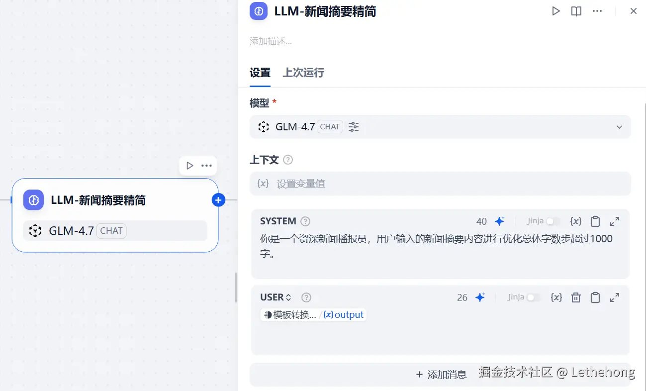 LLM 节点:新闻摘要二次精简