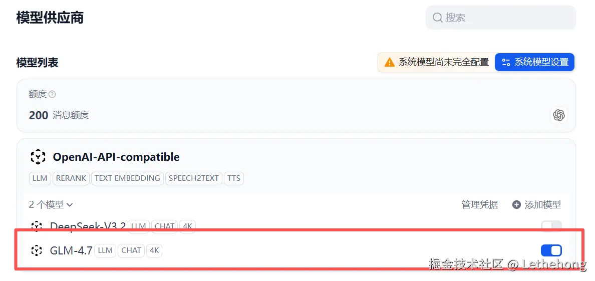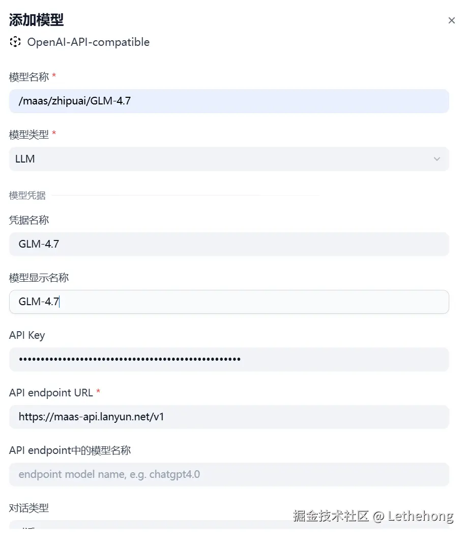 Dify 中配置 GLM-4.7 模型的完整流程