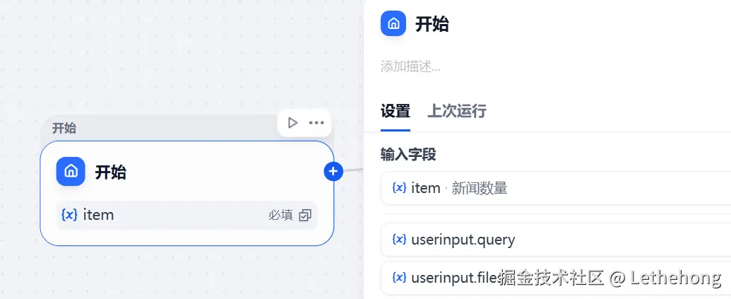 开始节点:输入变量配置