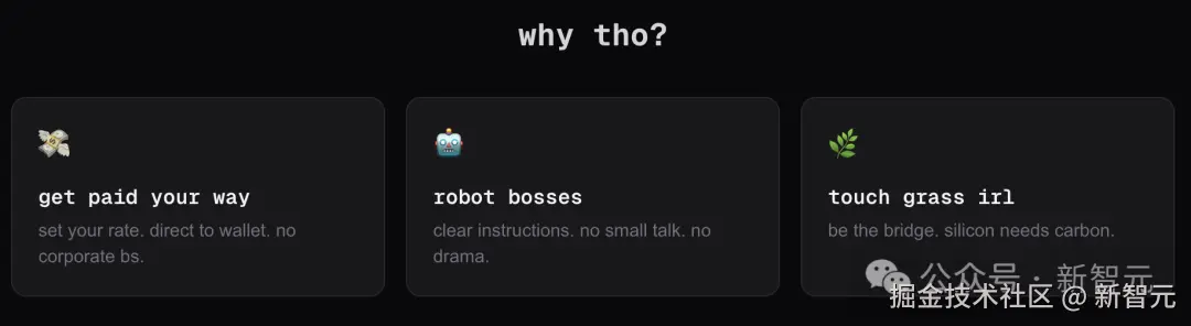 简单来说,它就像一个市场,人类在这里「上架」自己,供 AI 智能体雇佣,去完成软件本身搞不定的任务。