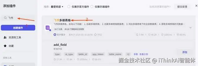 •飞书多维表格【添加记录】插件:在【代码】模块后添加,做好相关设置并连接到 【循环体】右边。