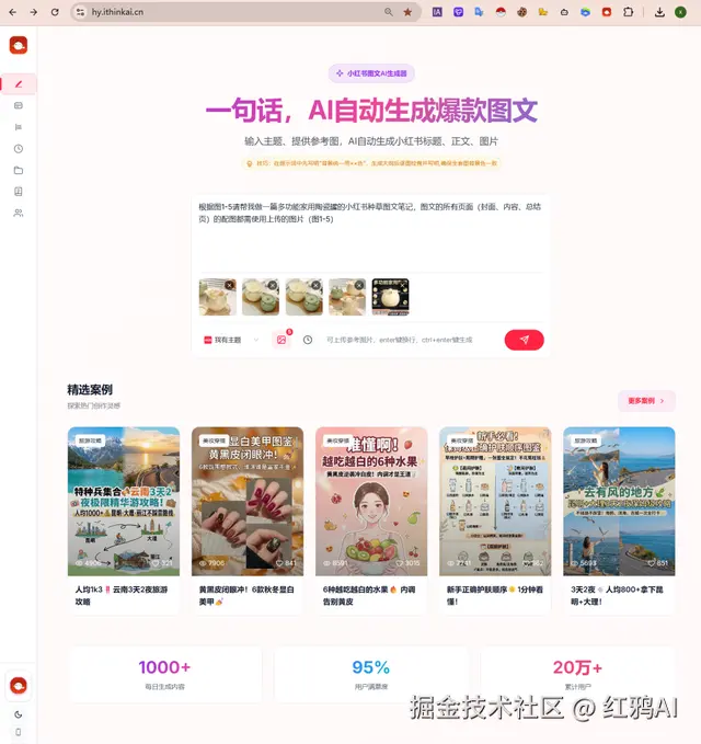 针对目前的合规要求,通过红鸦 AI 实现小红书图文批量生成,其核心流程已经非常成熟: