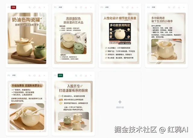第三步:根据生成的描述,依次批量生成所需的图片素材。AI 几分钟就能产出一套风格高度统一的素材。