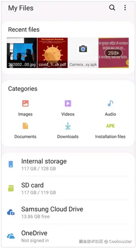 步骤 3. 打开“我的文件”应用,点击“内部存储”。打开文件夹,长按文件进行选择,找到要传输的文件。