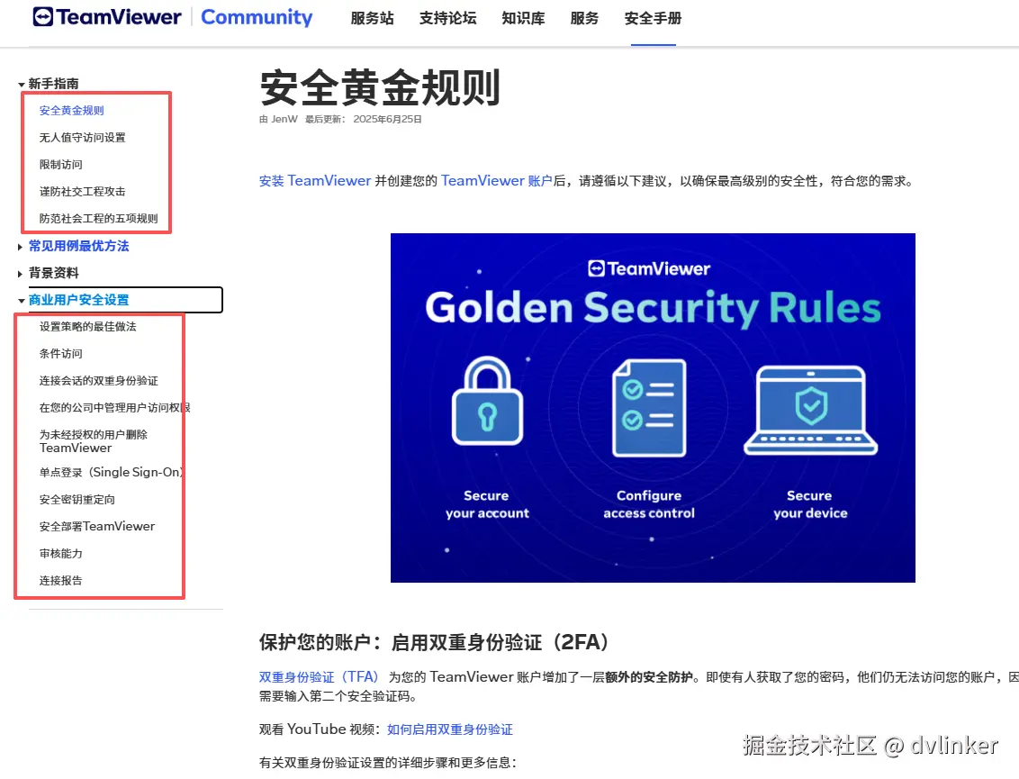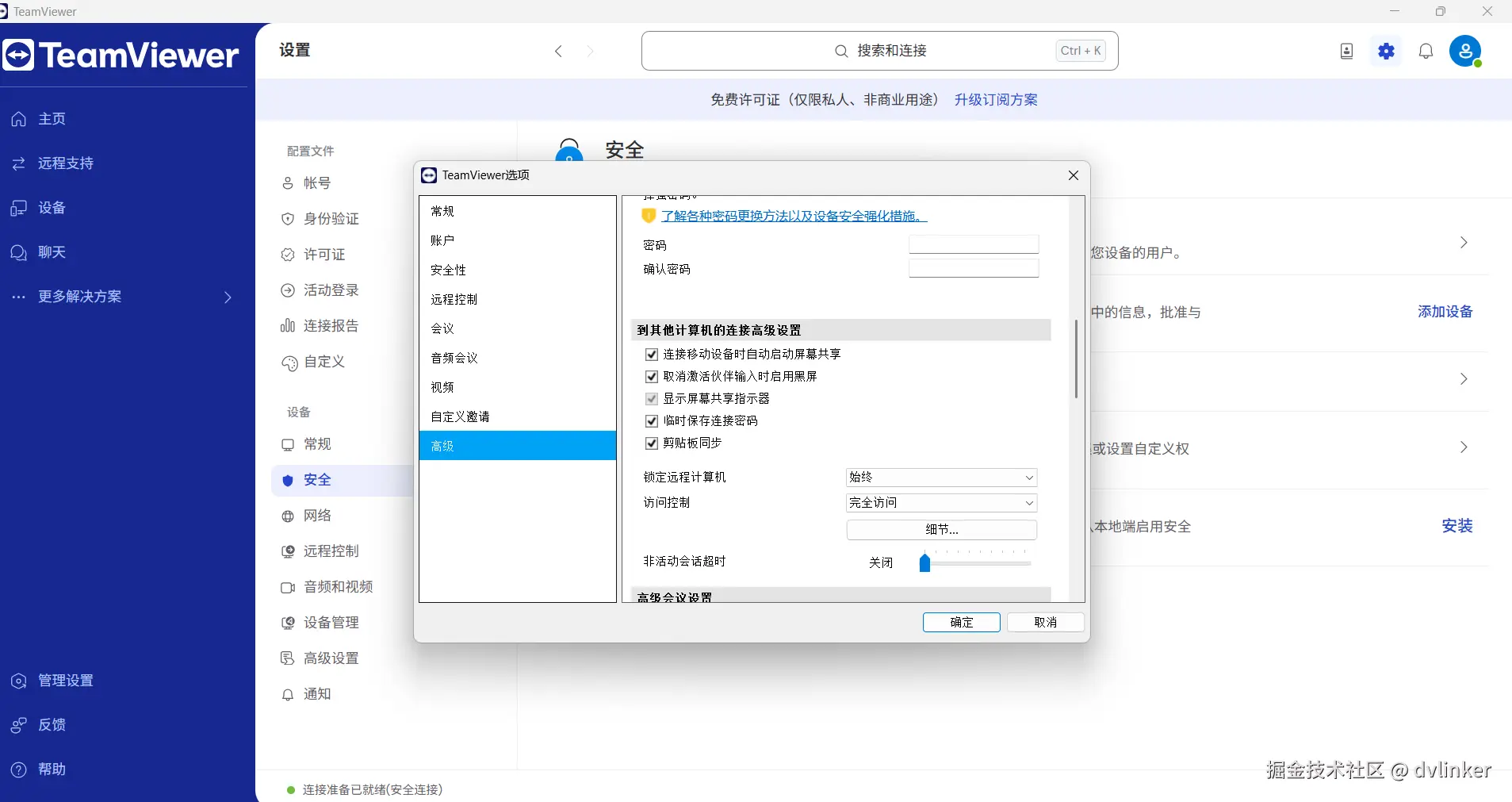 - TeamViewer提供了经典的企业级方案:强制双因素认证、单点登录(SSO)以及基于角色的权限管理。其“轻松访问”(信任设备列表)功能实现了安全的无密码化连接。
