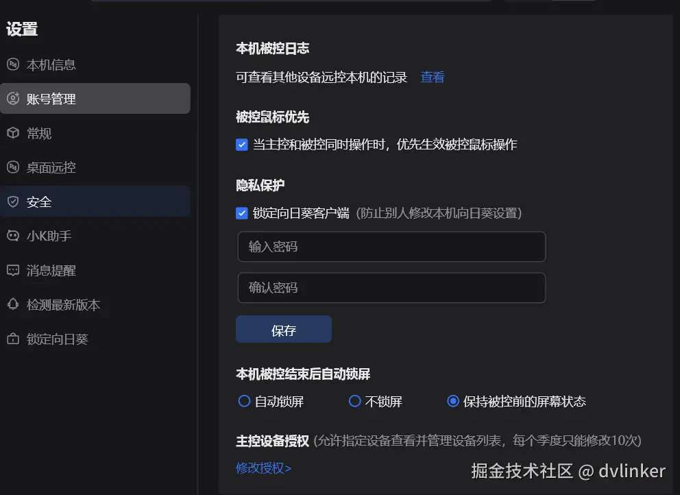 - 向日葵:提供传统的隐私屏功能,启用后被控端屏幕显示黑屏。同时支持查看被控日志。