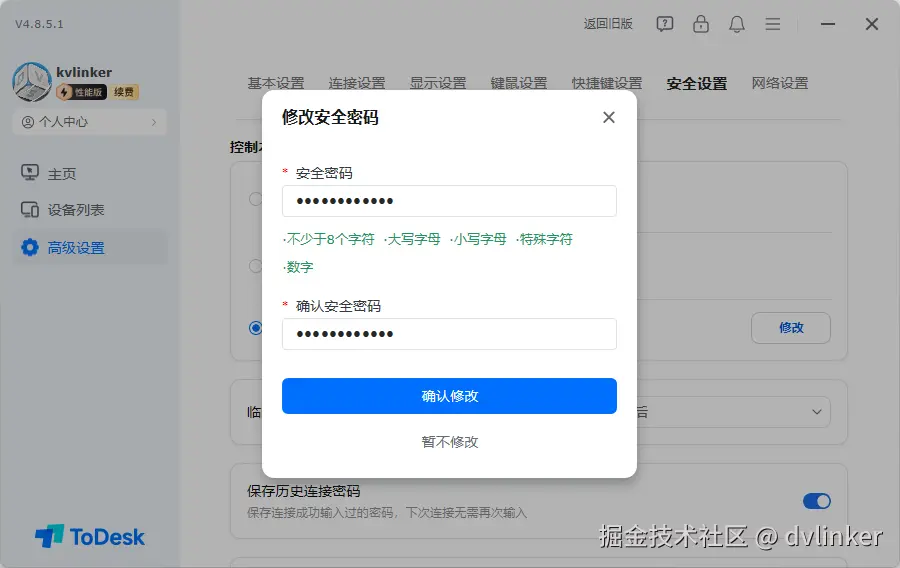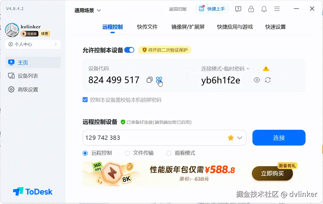 ToDesk的“二次验证保护”功能要求所有连接必须经过绑定的主设备(如手机)实时审批才能建立。这意味着即使临时密码不慎泄露,远程连接的控制权依然牢牢掌握在用户手中,从根本上杜绝了非知情连接。