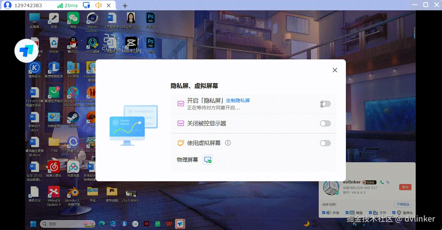 - 1)**基础隐私屏**:被控端屏幕锁定为黑屏;