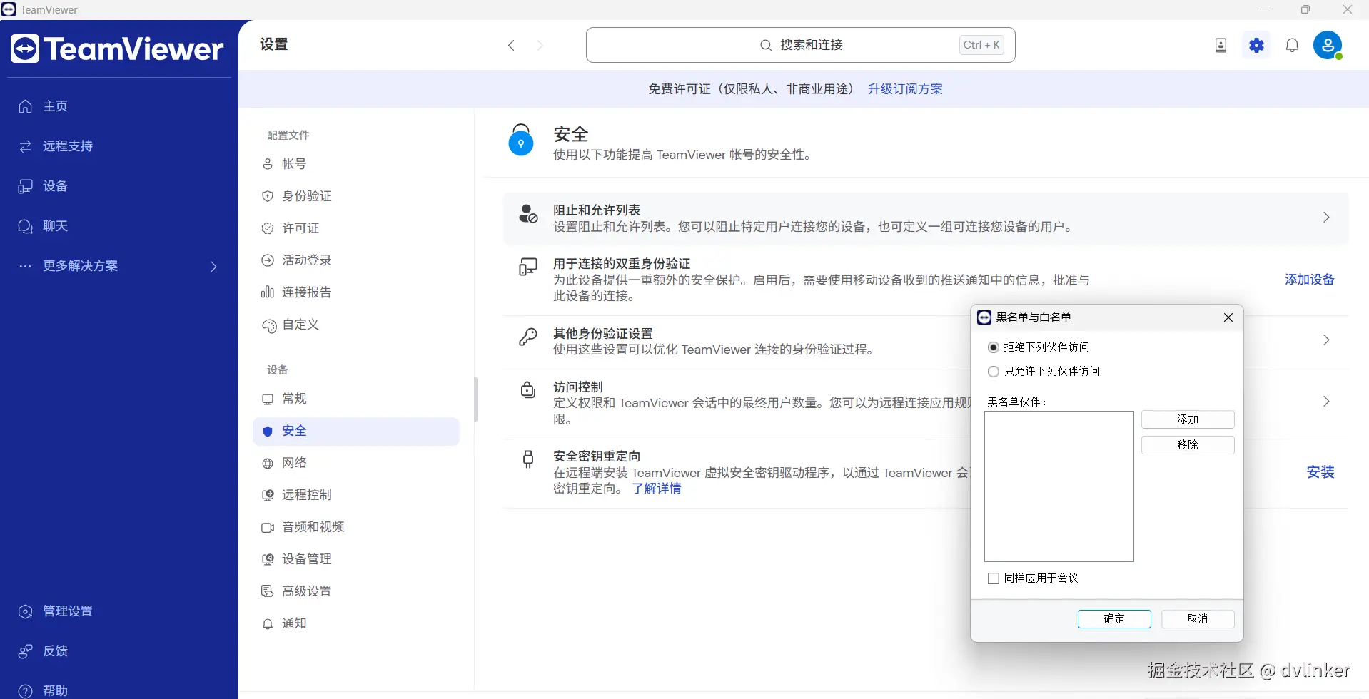 - TeamViewer 的“允许名单/阻止名单”与“轻松访问”:TeamViewer明确建议使用允许名单来替代长期密码。管理员可以限定只有特定的TeamViewer ID或账户可以访问某台计算机,即使密码泄露,非白名单内的攻击者也无法连接。