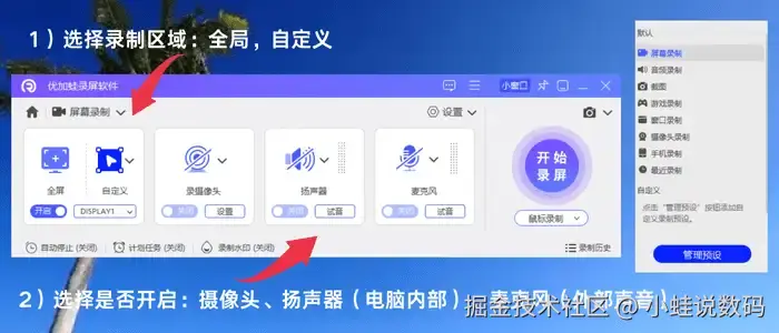屏幕录制免费软件三:运行优加蛙录屏软件
