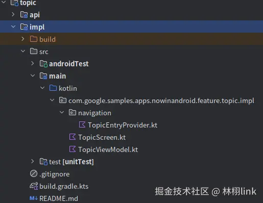 api子模块:仅包含导航键(如TopicNavKey)和导航函数(如Navigator.navigateToTopic),用于对外暴露跳转能力;
