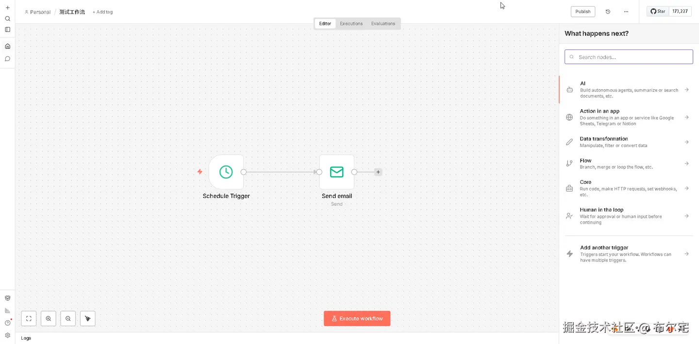n8n 是一个可视化工作流自动化平台,类似 Zapier 但可自托管: