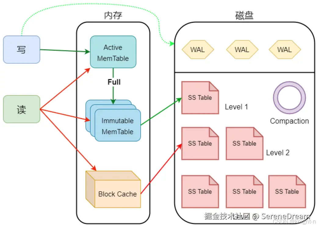 但是写性能是 LSM 树最强悍的地方,由于是顺序块写入,大大提升了写性能
