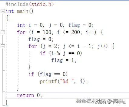 2.在上面的循环基础上,还要嵌套一层循环,来看看这个数是否只能被1和它本身整除。