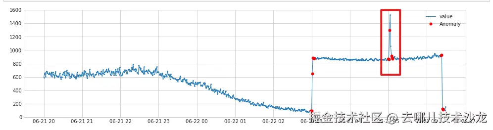 在原始监控图标识出上面检测到的异常点,得到的最终结果如下: