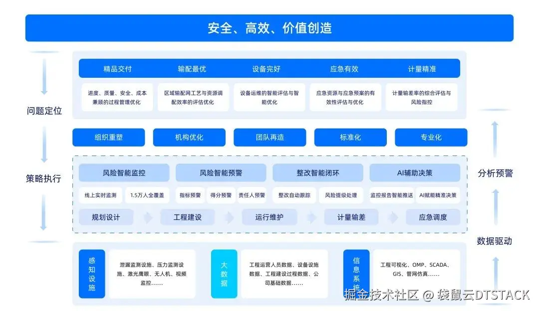 基于这一认识,白皮书提出了“一体两翼”的整体方案框架。“一体”指向统一的数据底座,核心目标是解决数据在跨系统、跨层级、跨业务域流动过程中的可解释性问题。通过多模态数据智能中台与治理体系建设,将组织、资产、项目、装置、人员、合同、物料等关键对象纳入统一的数据模型与语义体系,明确主数据口径、指标计算逻辑与责任归属,使不同系统产生的数据能够在同一语境下被理解、被对比、被追溯。这一层解决的是“数据能不能支撑管理”的问题,是所有后续分析与应用的前提。