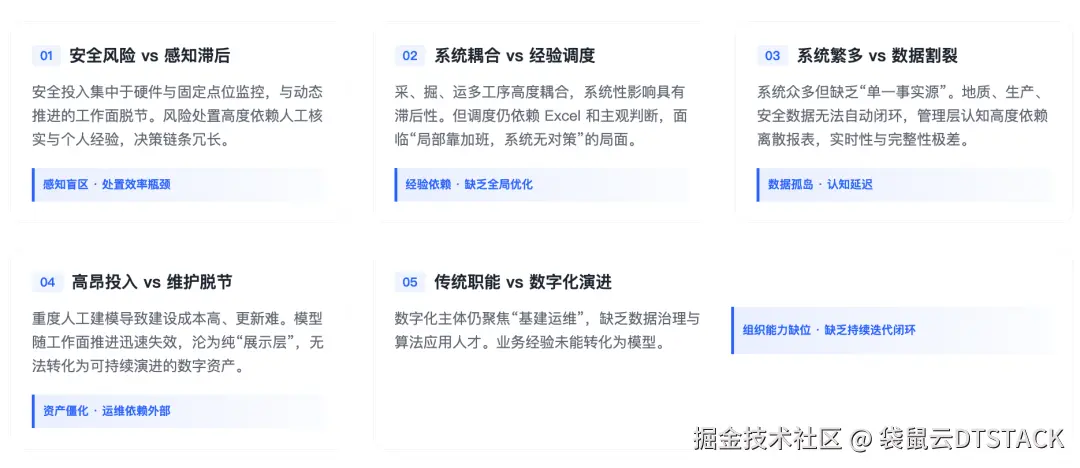 从产业链整体看,能源矿产行业正同时承受来自安全、成本、效率与治理复杂度的多重压力,但不同环节的问题形态并不相同。
